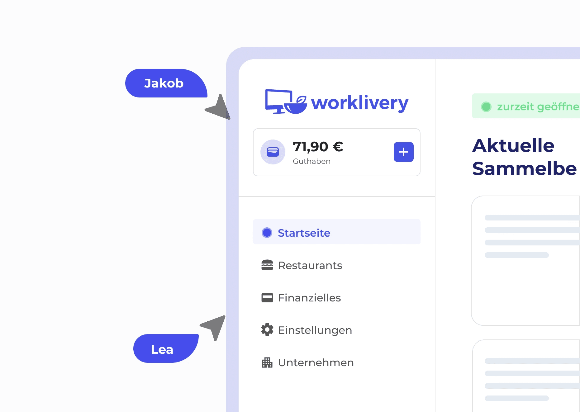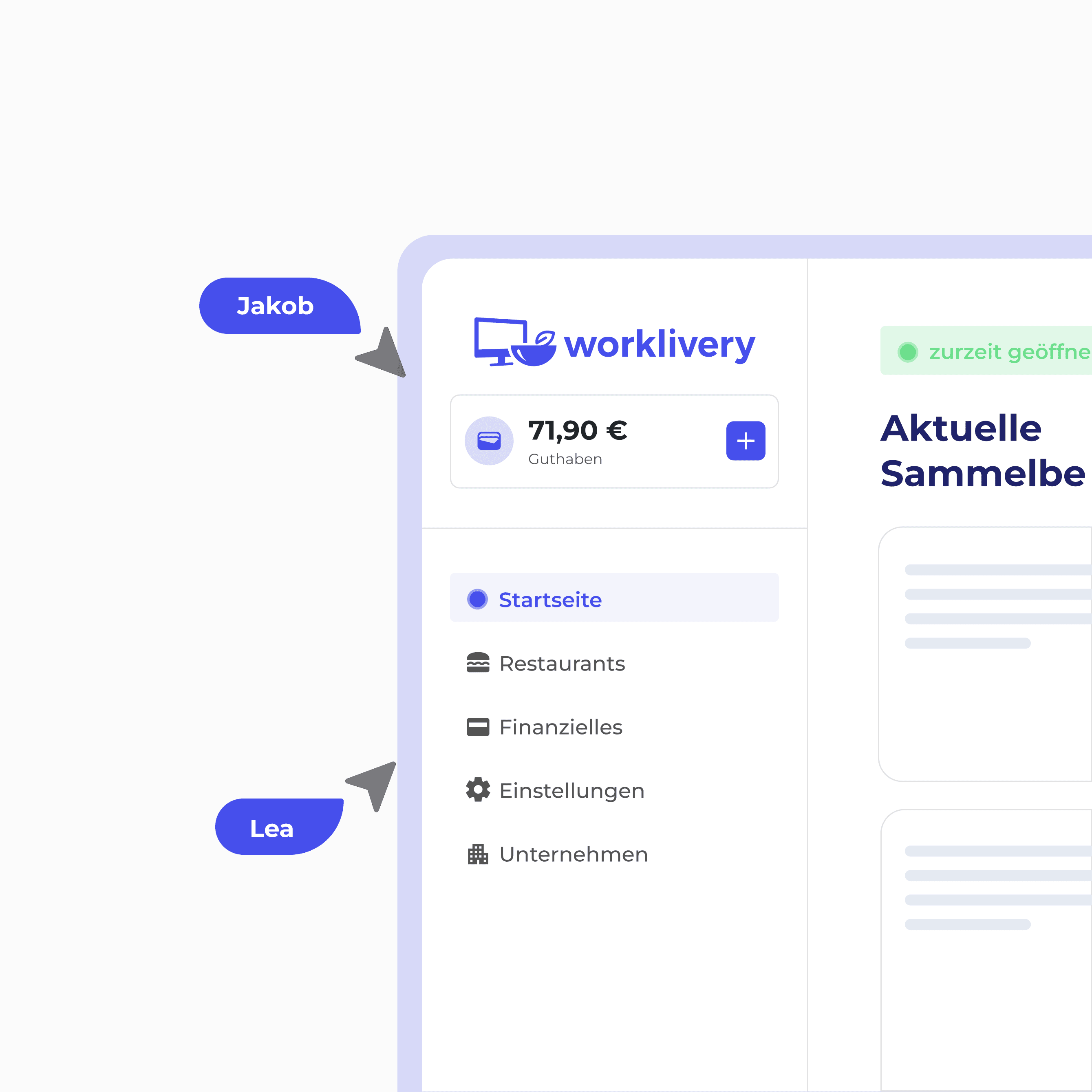 Worklivery wird von Unternehmen genutzt, die erstens ihren Mitarbeitern Zugang zu einer vielfältigen Auswahl an Gerichten bieten möchten, oder zweitens bestehende Essensbestellungen effizienter organisieren wollen.