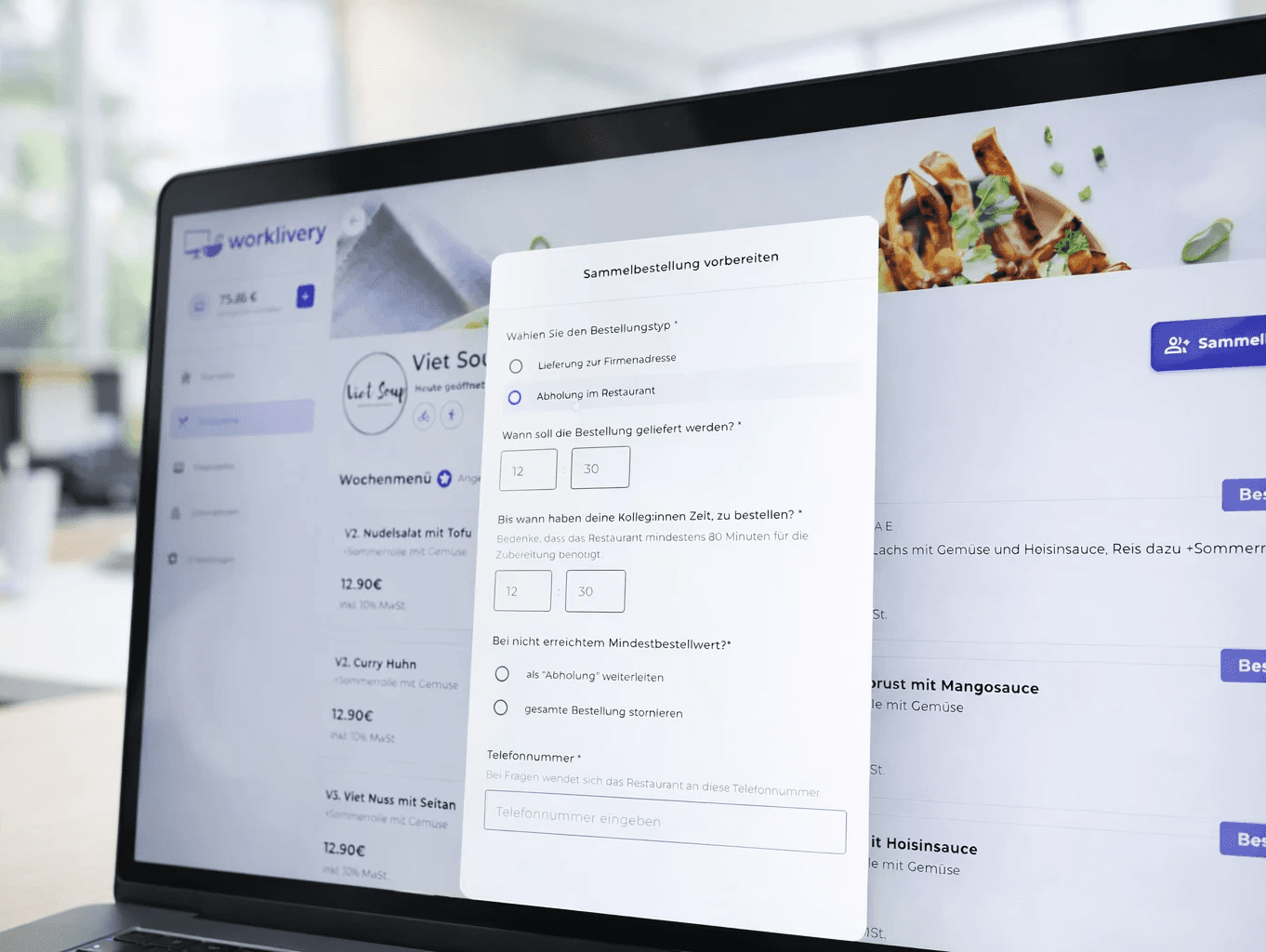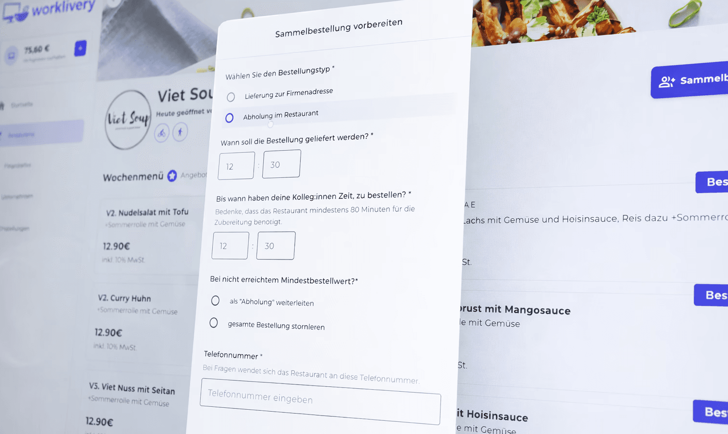 ”worklivery bietet Teams täglich die Auswahl aus über 700 frisch-gekochten Gerichten – geliefert innerhalb 90 Minuten direkt ins Büro.”